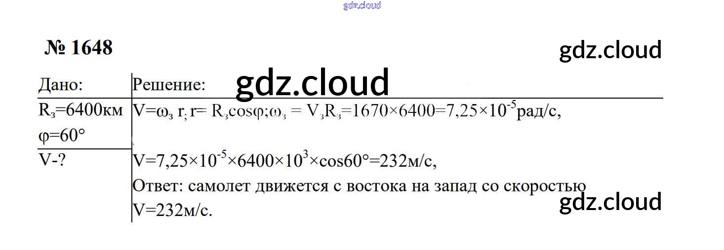 Ответ на задание 1648 Сборник задач Физика за 7, 8, 9 (седьмой, восьмой, девятый) класс Перышкин, Лонцова УМК 2016