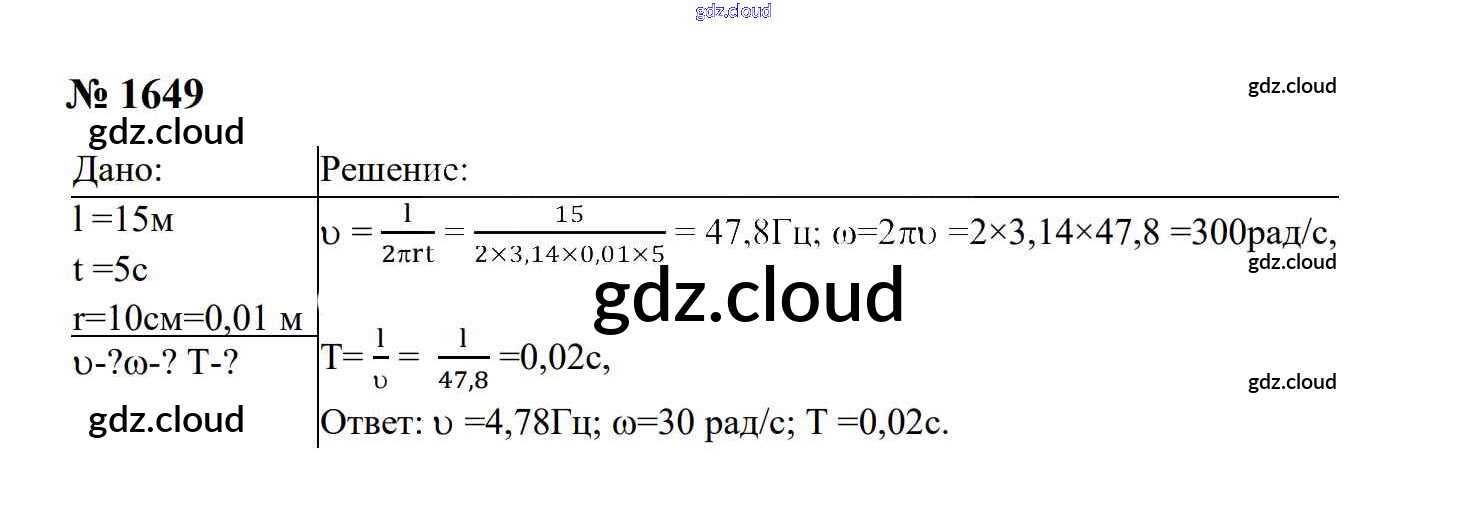 Ответ на задание 1649 Сборник задач Физика за 7, 8, 9 (седьмой, восьмой, девятый) класс Перышкин, Лонцова УМК 2016