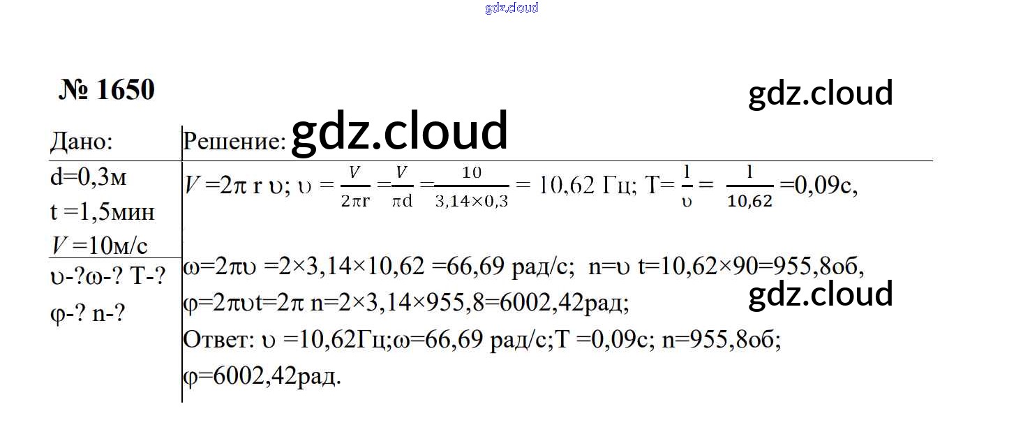 Ответ на задание 1650 Сборник задач Физика за 7, 8, 9 (седьмой, восьмой, девятый) класс Перышкин, Лонцова УМК 2016