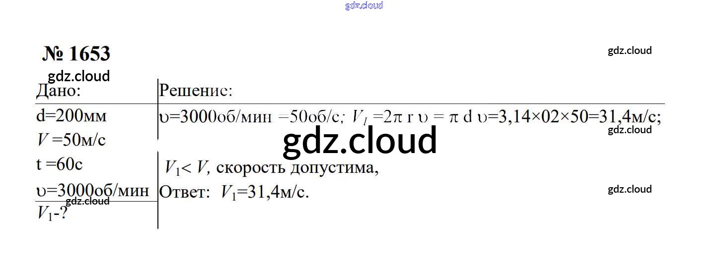 Ответ на задание 1653 Сборник задач Физика за 7, 8, 9 (седьмой, восьмой, девятый) класс Перышкин, Лонцова УМК 2016