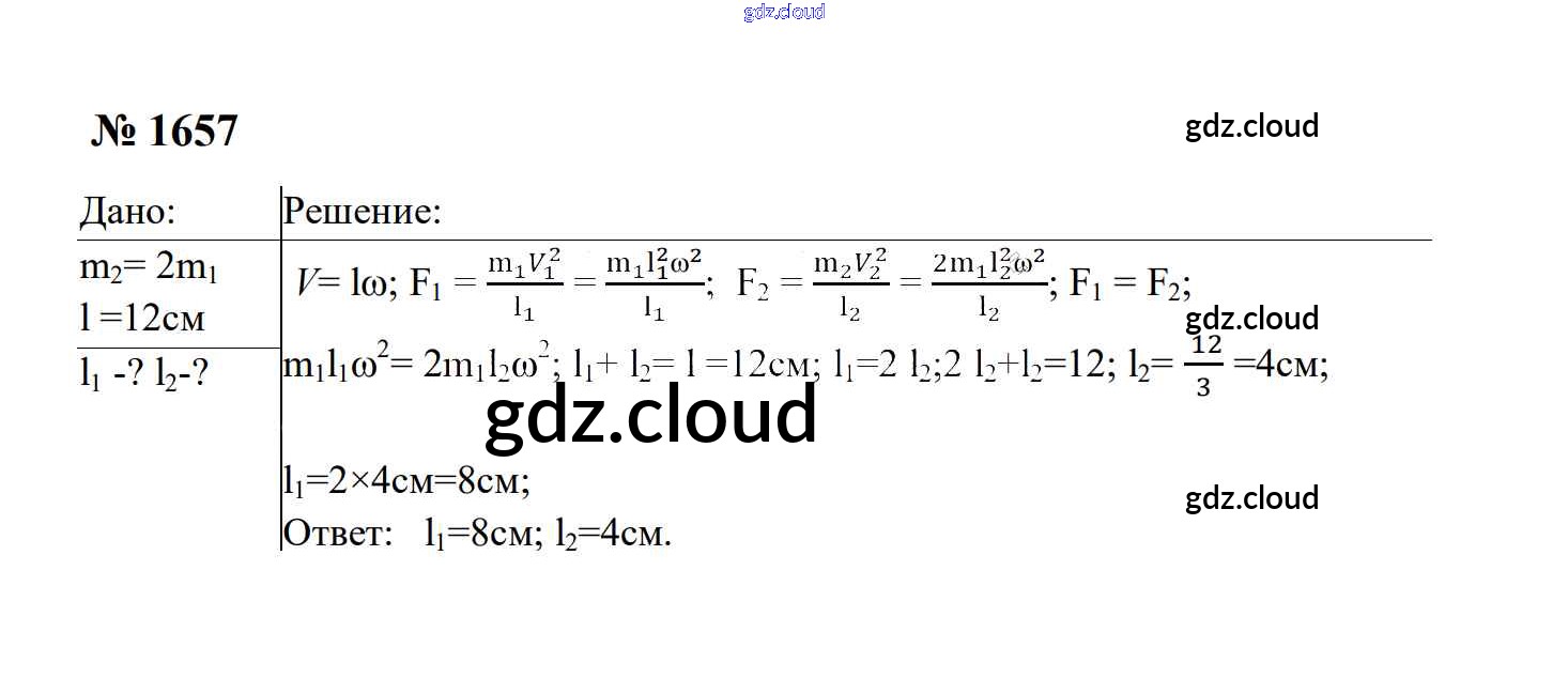 Ответ на задание 1657 Сборник задач Физика за 7, 8, 9 (седьмой, восьмой, девятый) класс Перышкин, Лонцова УМК 2016