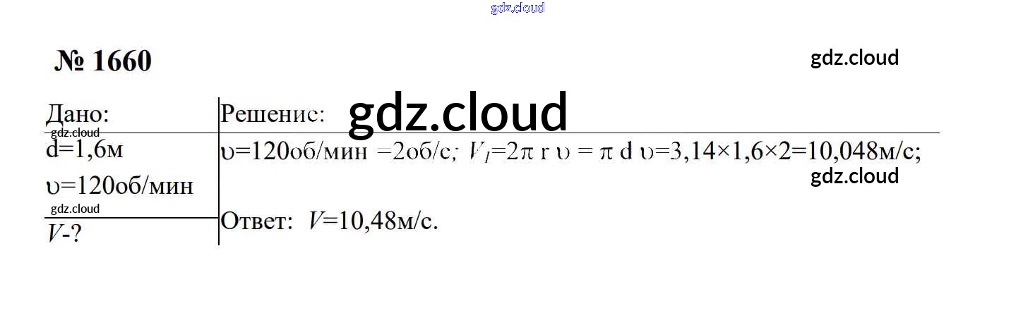 Ответ на задание 1660 Сборник задач Физика за 7, 8, 9 (седьмой, восьмой, девятый) класс Перышкин, Лонцова УМК 2016