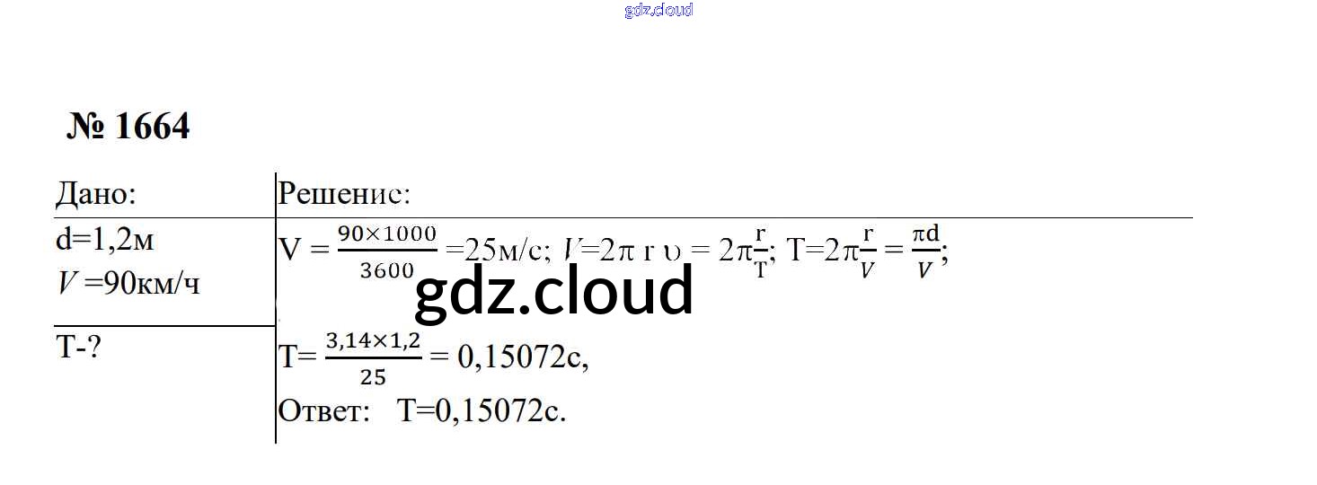 Ответ на задание 1664 Сборник задач Физика за 7, 8, 9 (седьмой, восьмой, девятый) класс Перышкин, Лонцова УМК 2016