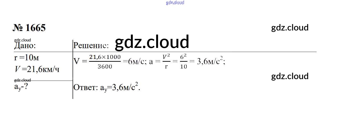 Ответ на задание 1665 Сборник задач Физика за 7, 8, 9 (седьмой, восьмой, девятый) класс Перышкин, Лонцова УМК 2016