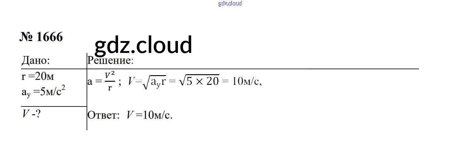 Ответ на задание 1666 Сборник задач Физика за 7, 8, 9 (седьмой, восьмой, девятый) класс Перышкин, Лонцова УМК 2016