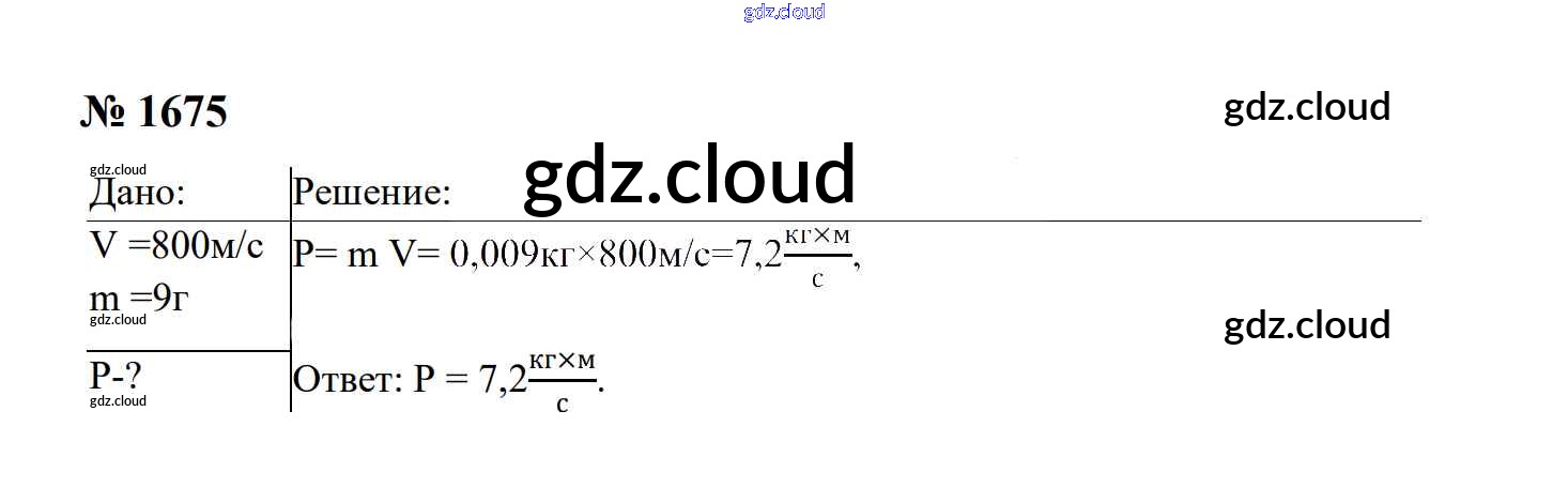 Ответ на задание 1675 Сборник задач Физика за 7, 8, 9 (седьмой, восьмой, девятый) класс Перышкин, Лонцова УМК 2016