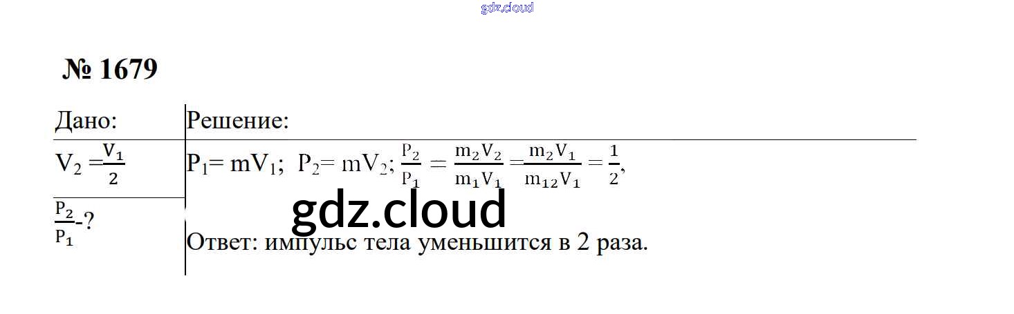 Ответ на задание 1679 Сборник задач Физика за 7, 8, 9 (седьмой, восьмой, девятый) класс Перышкин, Лонцова УМК 2016