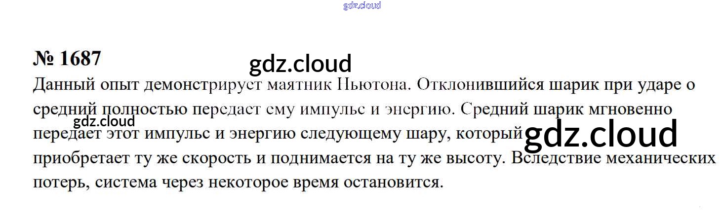 Ответ на задание 1687 Сборник задач Физика за 7, 8, 9 (седьмой, восьмой, девятый) класс Перышкин, Лонцова УМК 2016