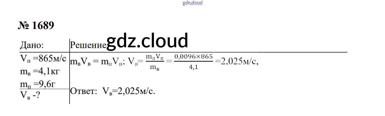 Ответ на задание 1689 Сборник задач Физика за 7, 8, 9 (седьмой, восьмой, девятый) класс Перышкин, Лонцова УМК 2016