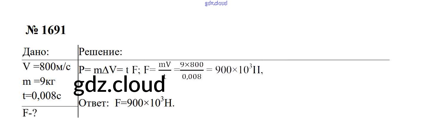 Ответ на задание 1691 Сборник задач Физика за 7, 8, 9 (седьмой, восьмой, девятый) класс Перышкин, Лонцова УМК 2016