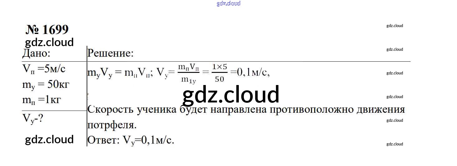 Ответ на задание 1699 Сборник задач Физика за 7, 8, 9 (седьмой, восьмой, девятый) класс Перышкин, Лонцова УМК 2016