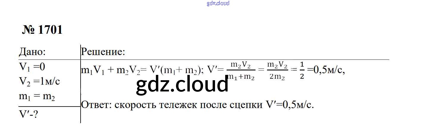 Ответ на задание 1701 Сборник задач Физика за 7, 8, 9 (седьмой, восьмой, девятый) класс Перышкин, Лонцова УМК 2016