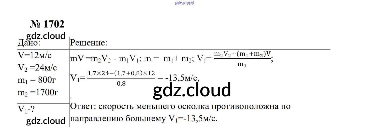 Ответ на задание 1702 Сборник задач Физика за 7, 8, 9 (седьмой, восьмой, девятый) класс Перышкин, Лонцова УМК 2016