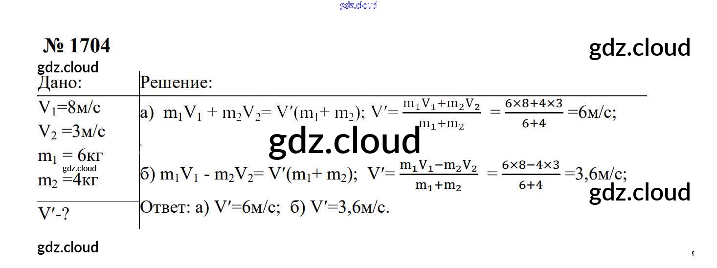 Ответ на задание 1704 Сборник задач Физика за 7, 8, 9 (седьмой, восьмой, девятый) класс Перышкин, Лонцова УМК 2016