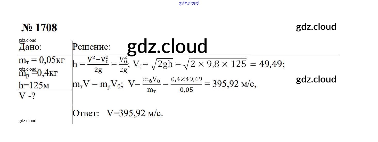 Ответ на задание 1708 Сборник задач Физика за 7, 8, 9 (седьмой, восьмой, девятый) класс Перышкин, Лонцова УМК 2016