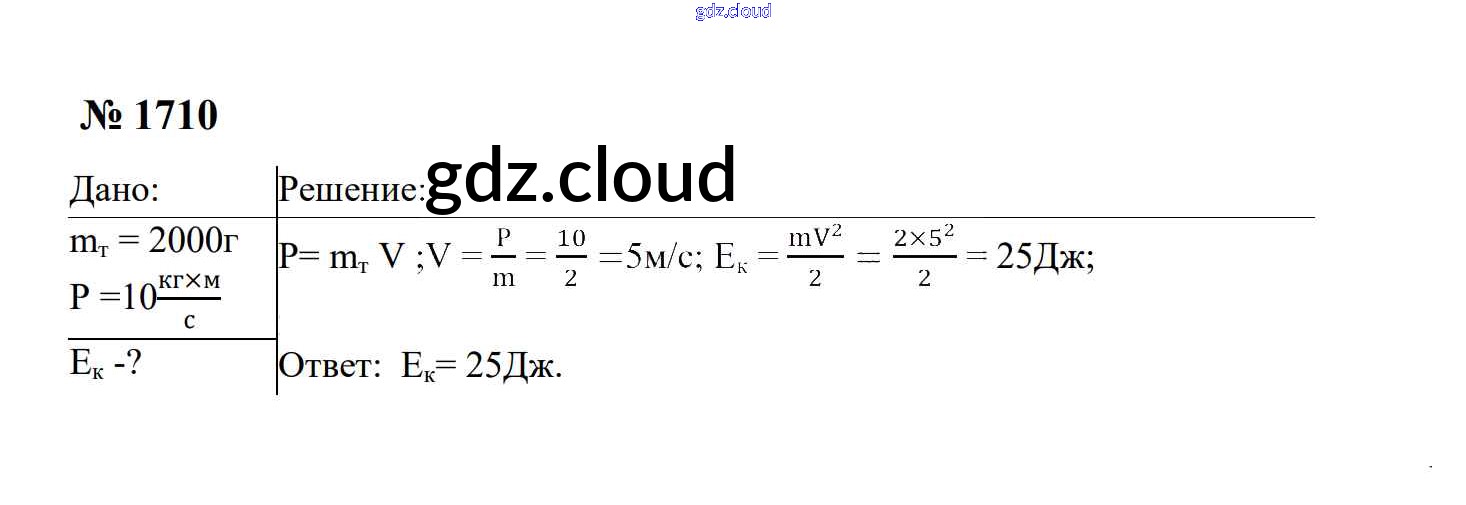 Ответ на задание 1710 Сборник задач Физика за 7, 8, 9 (седьмой, восьмой, девятый) класс Перышкин, Лонцова УМК 2016