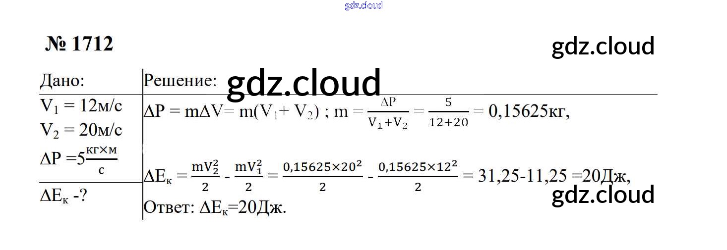 Ответ на задание 1712 Сборник задач Физика за 7, 8, 9 (седьмой, восьмой, девятый) класс Перышкин, Лонцова УМК 2016