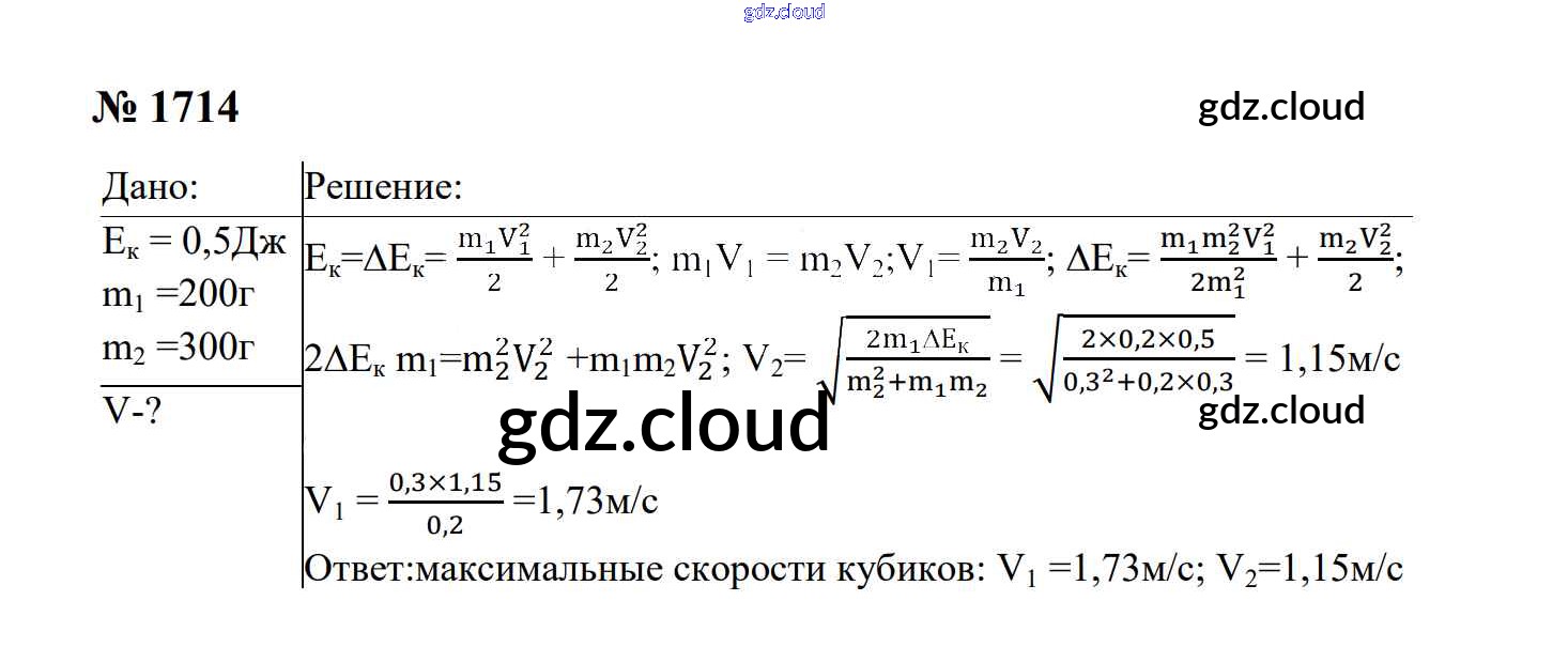 Ответ на задание 1714 Сборник задач Физика за 7, 8, 9 (седьмой, восьмой, девятый) класс Перышкин, Лонцова УМК 2016