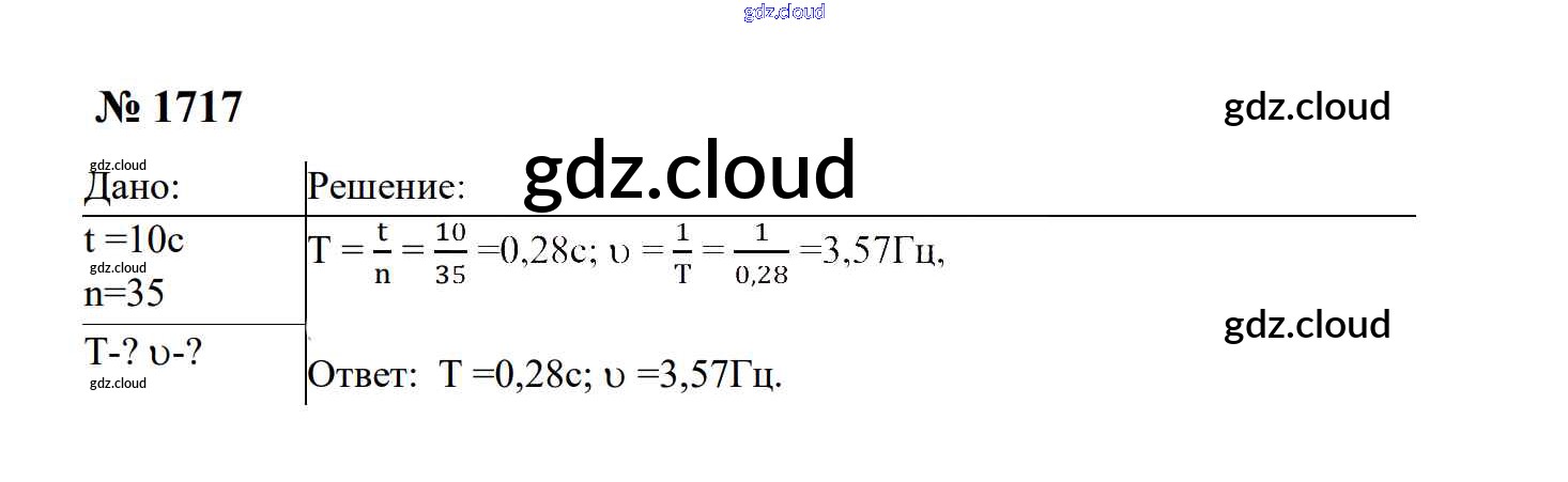 Ответ на задание 1717 Сборник задач Физика за 7, 8, 9 (седьмой, восьмой, девятый) класс Перышкин, Лонцова УМК 2016