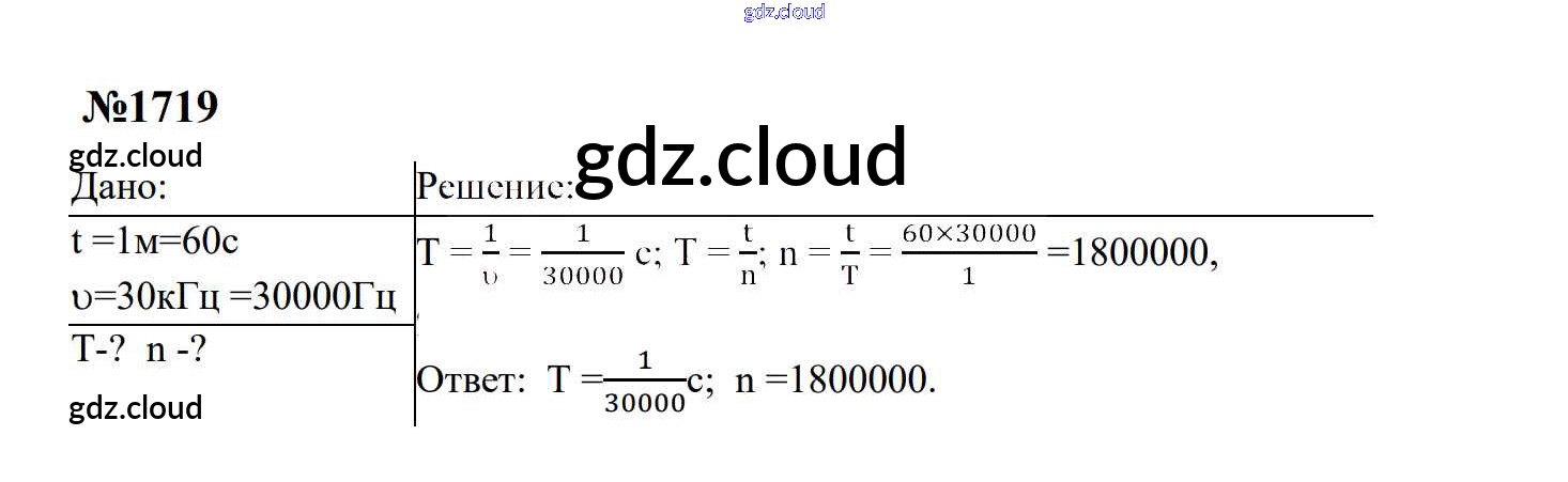 Ответ на задание 1719 Сборник задач Физика за 7, 8, 9 (седьмой, восьмой, девятый) класс Перышкин, Лонцова УМК 2016