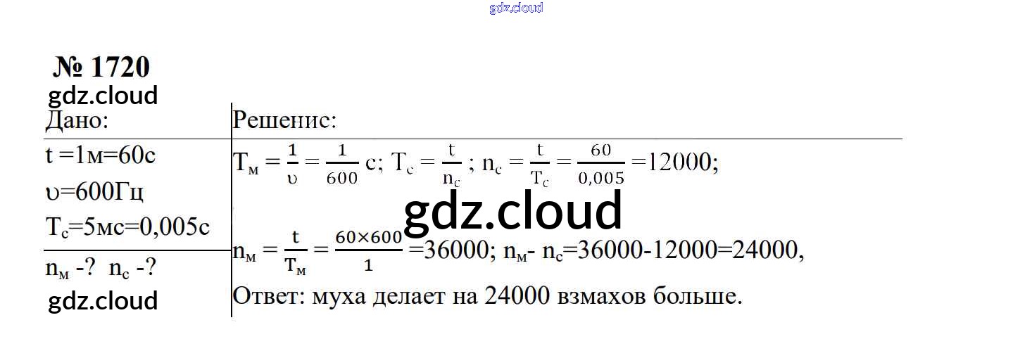 Ответ на задание 1720 Сборник задач Физика за 7, 8, 9 (седьмой, восьмой, девятый) класс Перышкин, Лонцова УМК 2016