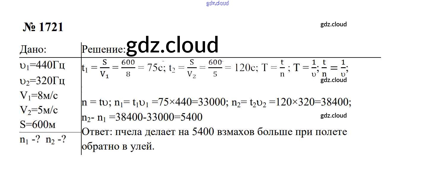 Ответ на задание 1721 Сборник задач Физика за 7, 8, 9 (седьмой, восьмой, девятый) класс Перышкин, Лонцова УМК 2016