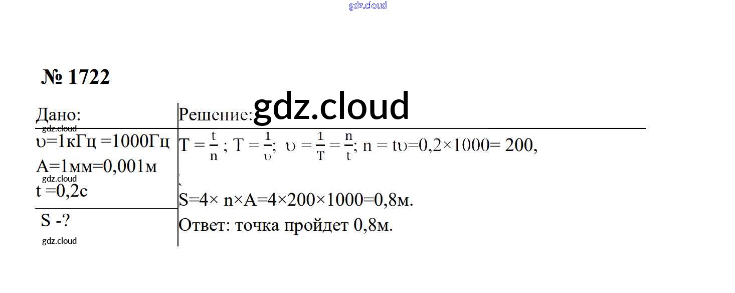 Ответ на задание 1722 Сборник задач Физика за 7, 8, 9 (седьмой, восьмой, девятый) класс Перышкин, Лонцова УМК 2016