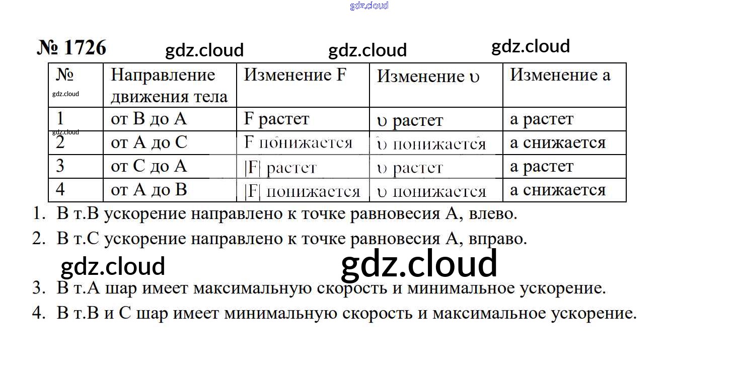 Ответ на задание 1726 Сборник задач Физика за 7, 8, 9 (седьмой, восьмой, девятый) класс Перышкин, Лонцова УМК 2016