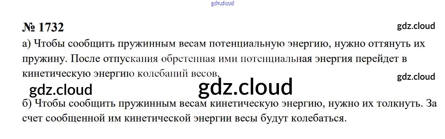 Ответ на задание 1732 Сборник задач Физика за 7, 8, 9 (седьмой, восьмой, девятый) класс Перышкин, Лонцова УМК 2016