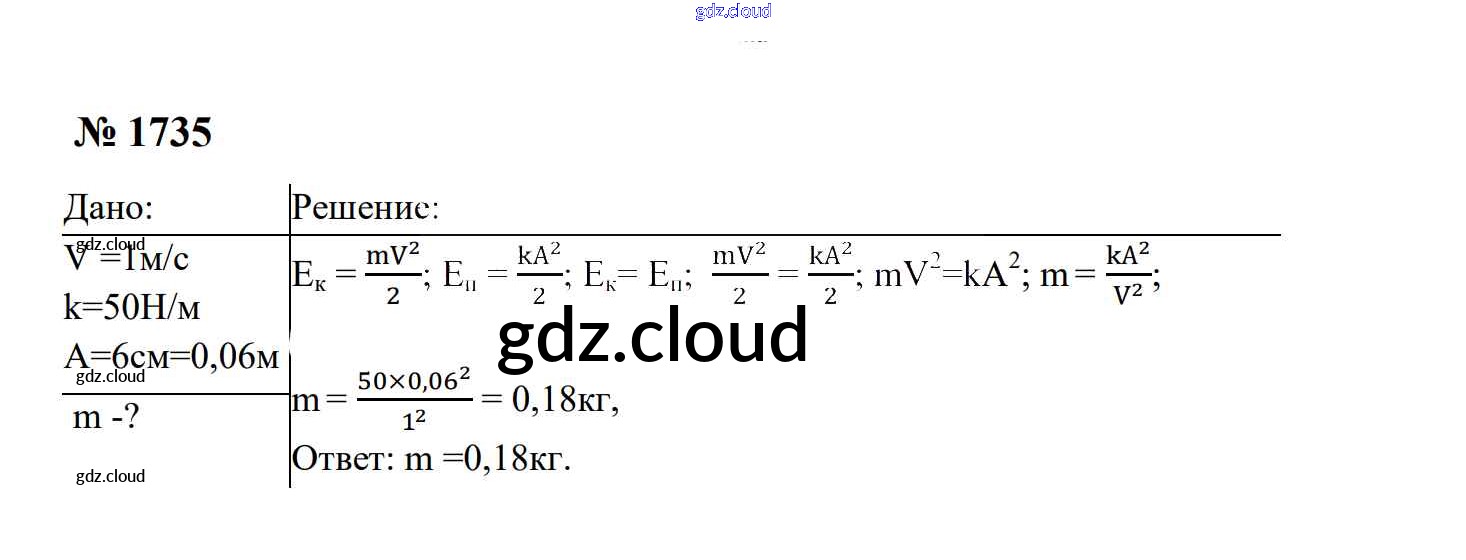 Ответ на задание 1735 Сборник задач Физика за 7, 8, 9 (седьмой, восьмой, девятый) класс Перышкин, Лонцова УМК 2016