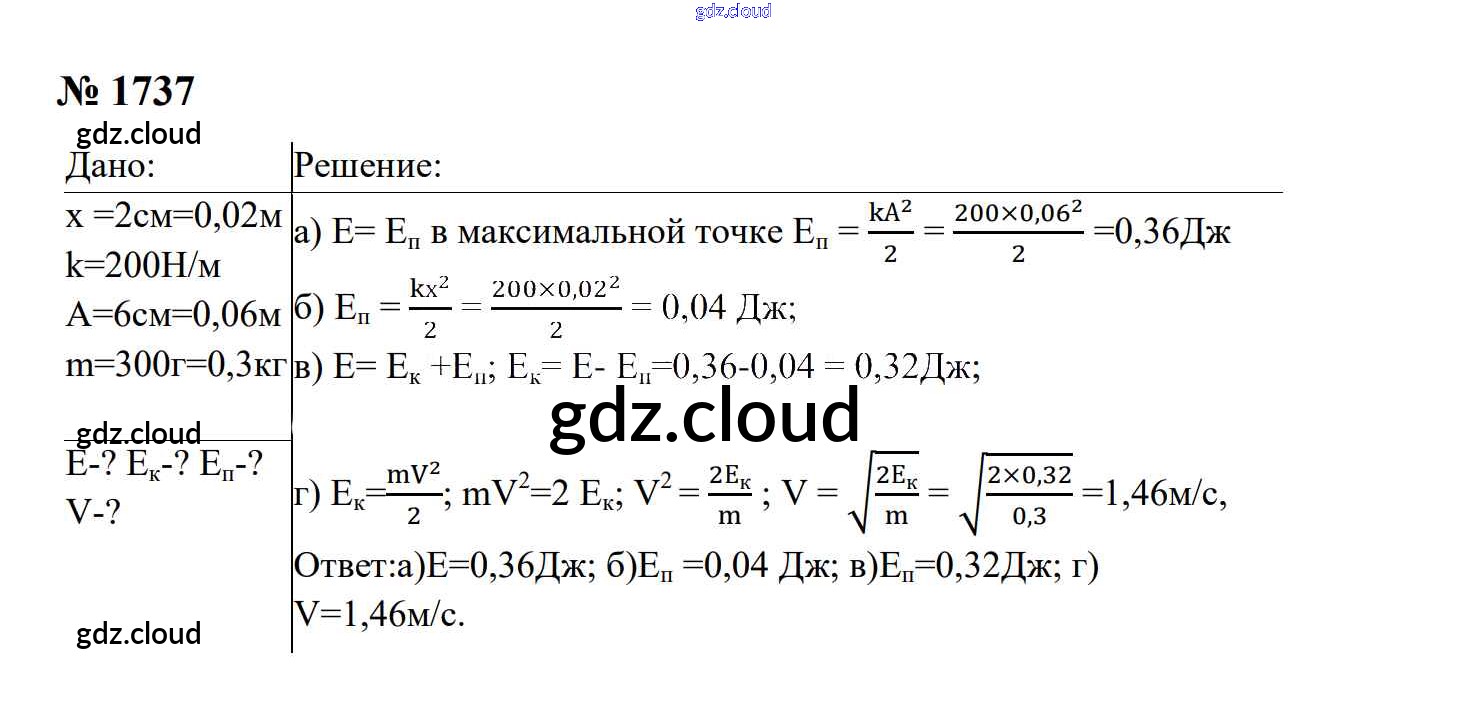 Ответ на задание 1737 Сборник задач Физика за 7, 8, 9 (седьмой, восьмой, девятый) класс Перышкин, Лонцова УМК 2016