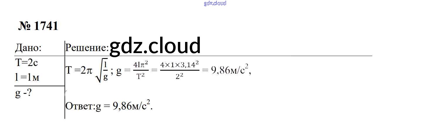 Ответ на задание 1741 Сборник задач Физика за 7, 8, 9 (седьмой, восьмой, девятый) класс Перышкин, Лонцова УМК 2016