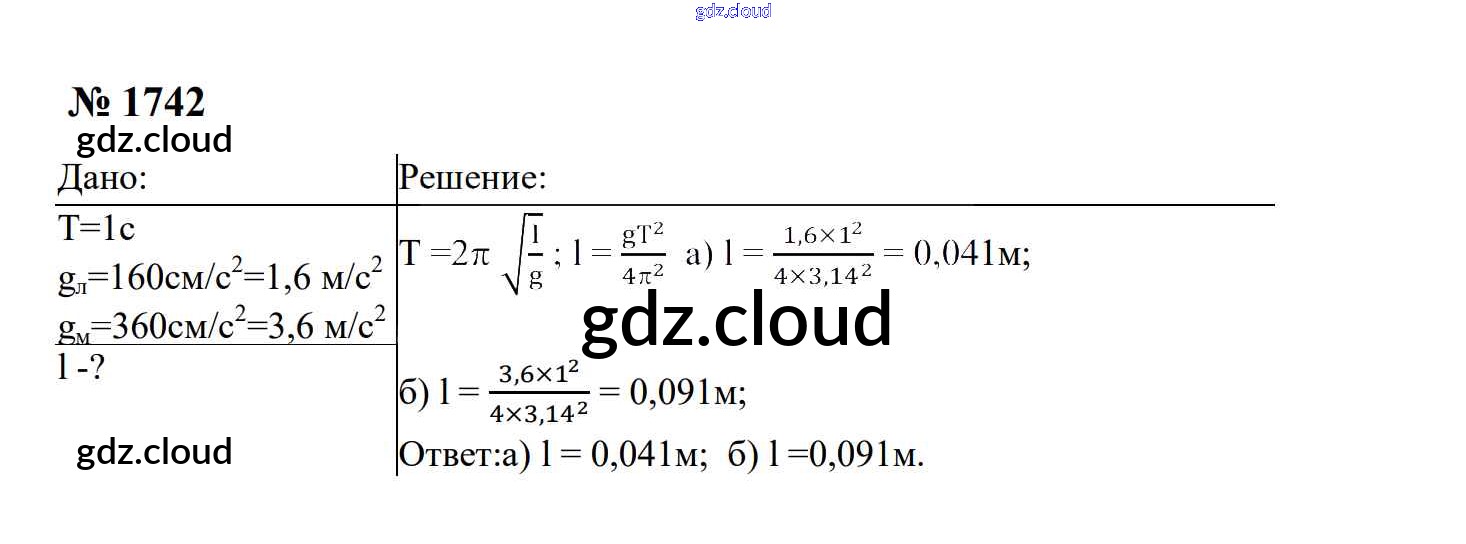 Ответ на задание 1742 Сборник задач Физика за 7, 8, 9 (седьмой, восьмой, девятый) класс Перышкин, Лонцова УМК 2016