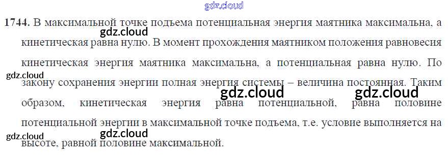 Ответ на задание 1744 Сборник задач Физика за 7, 8, 9 (седьмой, восьмой, девятый) класс Перышкин, Лонцова УМК 2016