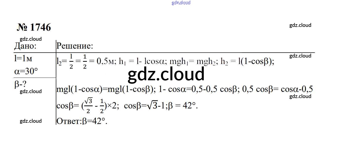 Ответ на задание 1746 Сборник задач Физика за 7, 8, 9 (седьмой, восьмой, девятый) класс Перышкин, Лонцова УМК 2016