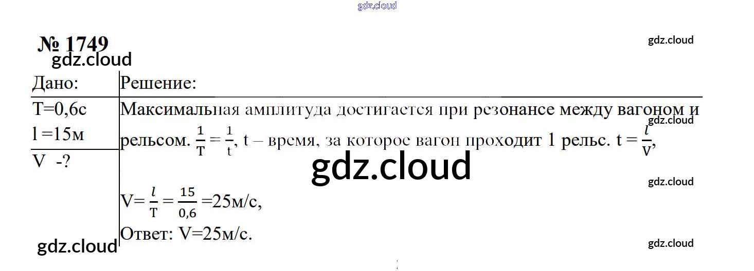 Ответ на задание 1749 Сборник задач Физика за 7, 8, 9 (седьмой, восьмой, девятый) класс Перышкин, Лонцова УМК 2016
