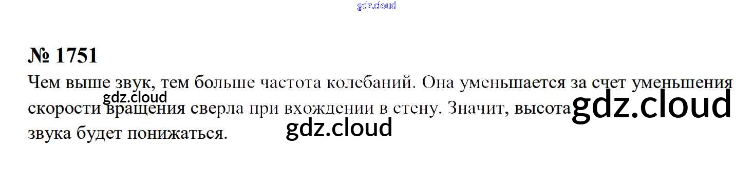 Ответ на задание 1751 Сборник задач Физика за 7, 8, 9 (седьмой, восьмой, девятый) класс Перышкин, Лонцова УМК 2016