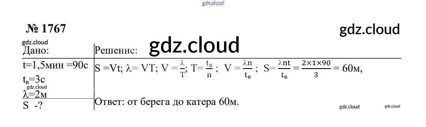 Ответ на задание 1767 Сборник задач Физика за 7, 8, 9 (седьмой, восьмой, девятый) класс Перышкин, Лонцова УМК 2016