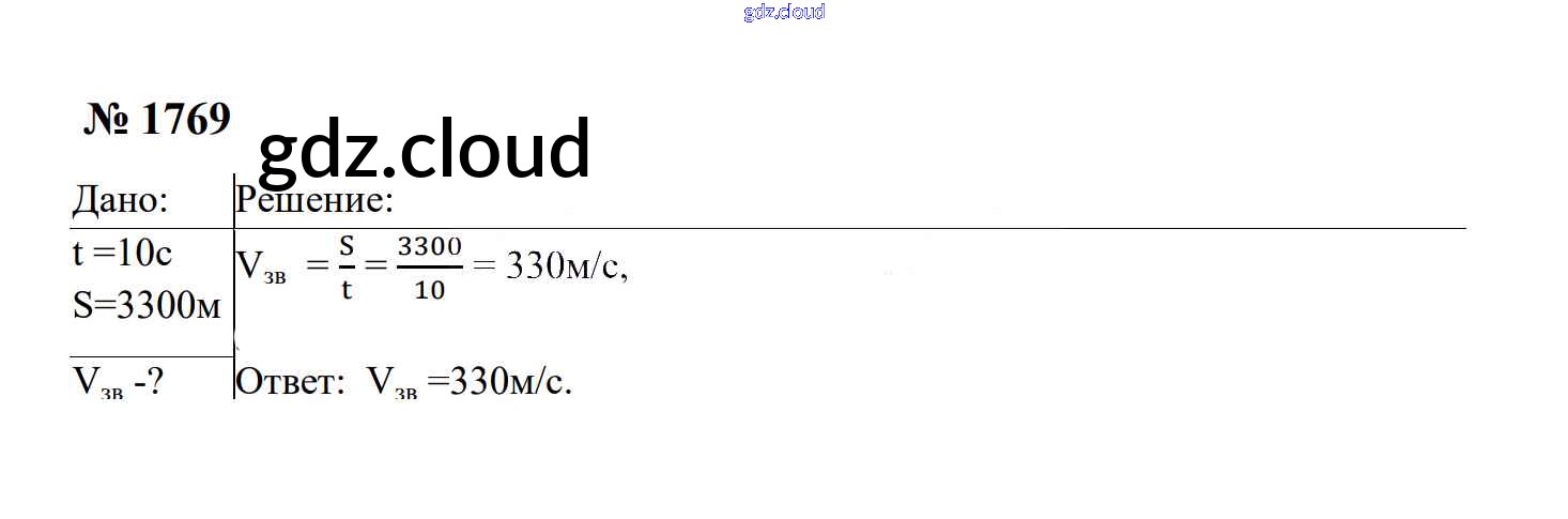 Ответ на задание 1769 Сборник задач Физика за 7, 8, 9 (седьмой, восьмой, девятый) класс Перышкин, Лонцова УМК 2016