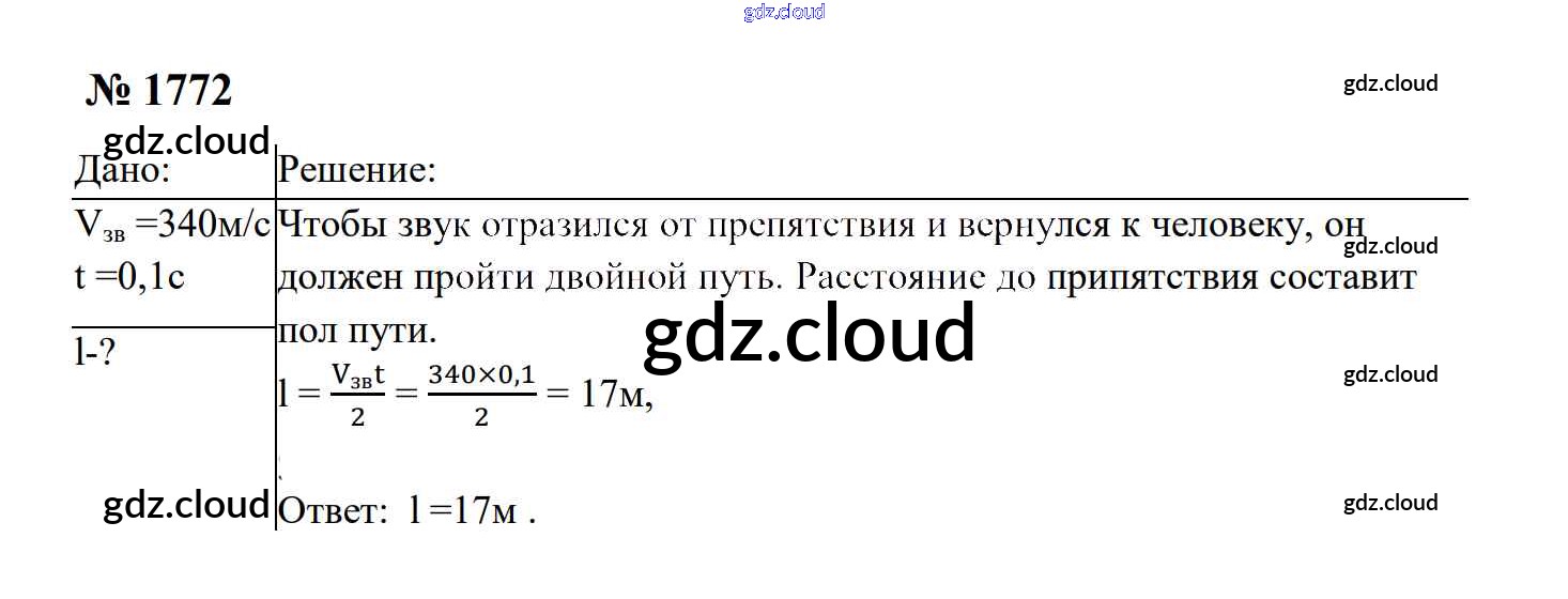 Ответ на задание 1772 Сборник задач Физика за 7, 8, 9 (седьмой, восьмой, девятый) класс Перышкин, Лонцова УМК 2016