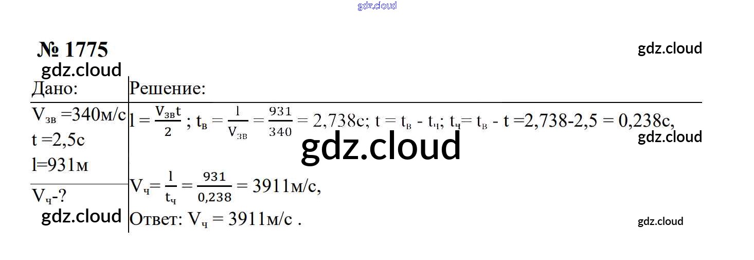 Ответ на задание 1775 Сборник задач Физика за 7, 8, 9 (седьмой, восьмой, девятый) класс Перышкин, Лонцова УМК 2016