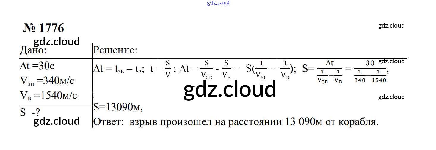 Ответ на задание 1776 Сборник задач Физика за 7, 8, 9 (седьмой, восьмой, девятый) класс Перышкин, Лонцова УМК 2016