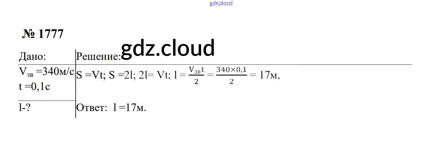 Ответ на задание 1777 Сборник задач Физика за 7, 8, 9 (седьмой, восьмой, девятый) класс Перышкин, Лонцова УМК 2016
