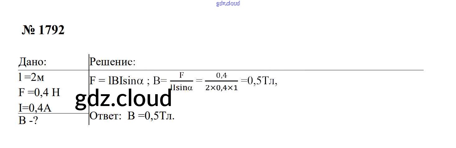 Ответ на задание 1792 Сборник задач Физика за 7, 8, 9 (седьмой, восьмой, девятый) класс Перышкин, Лонцова УМК 2016