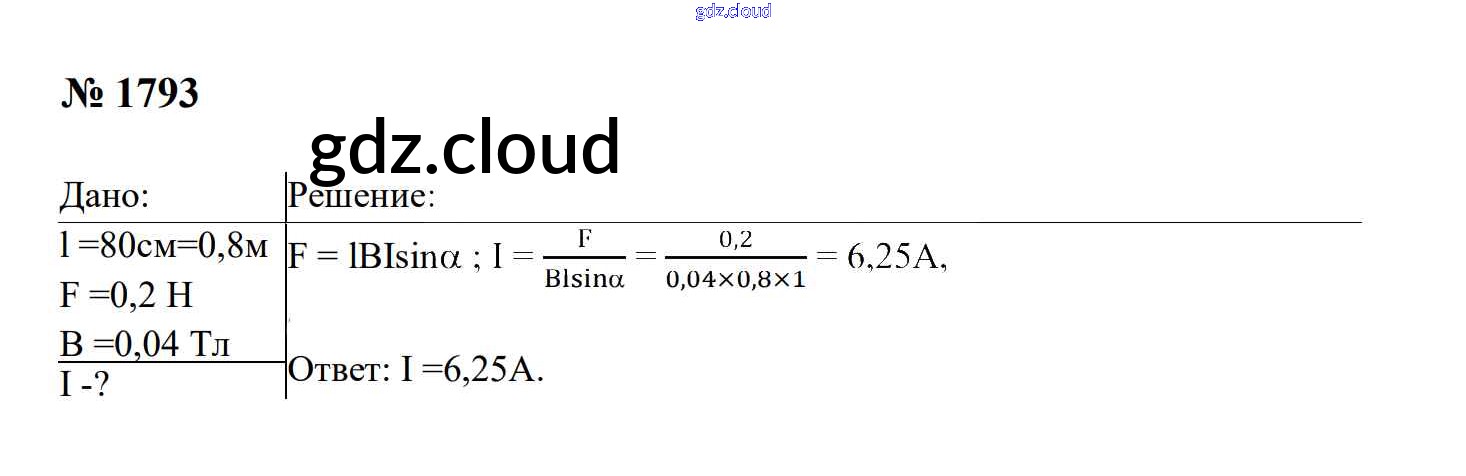 Ответ на задание 1793 Сборник задач Физика за 7, 8, 9 (седьмой, восьмой, девятый) класс Перышкин, Лонцова УМК 2016