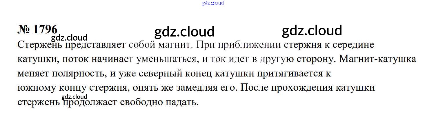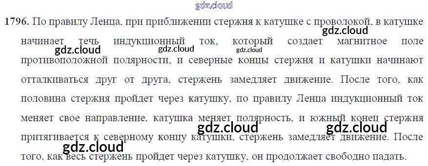 Ответ на задание 1796 Сборник задач Физика за 7, 8, 9 (седьмой, восьмой, девятый) класс Перышкин, Лонцова УМК 2016