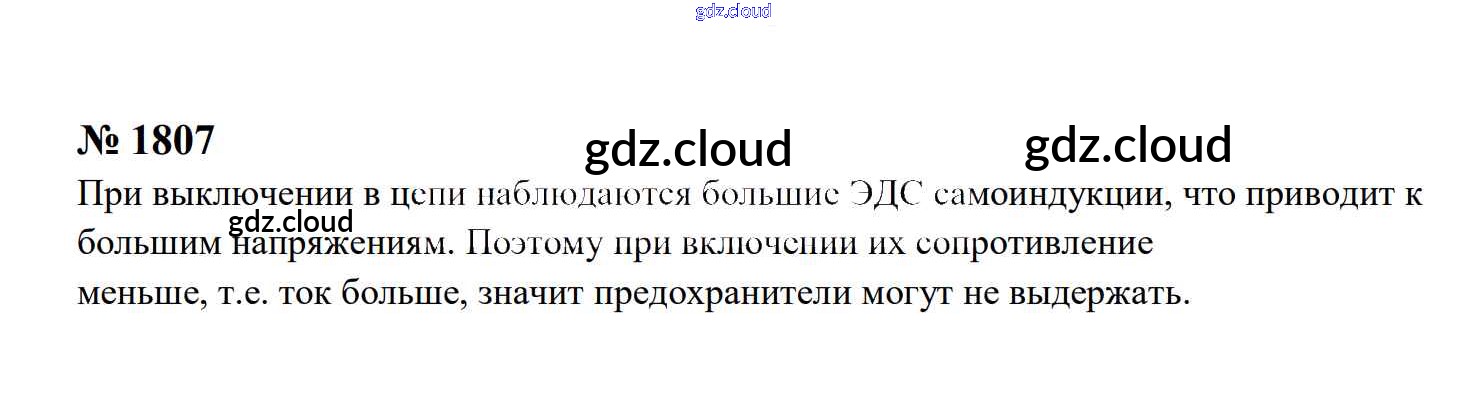 Ответ на задание 1807 Сборник задач Физика за 7, 8, 9 (седьмой, восьмой, девятый) класс Перышкин, Лонцова УМК 2016