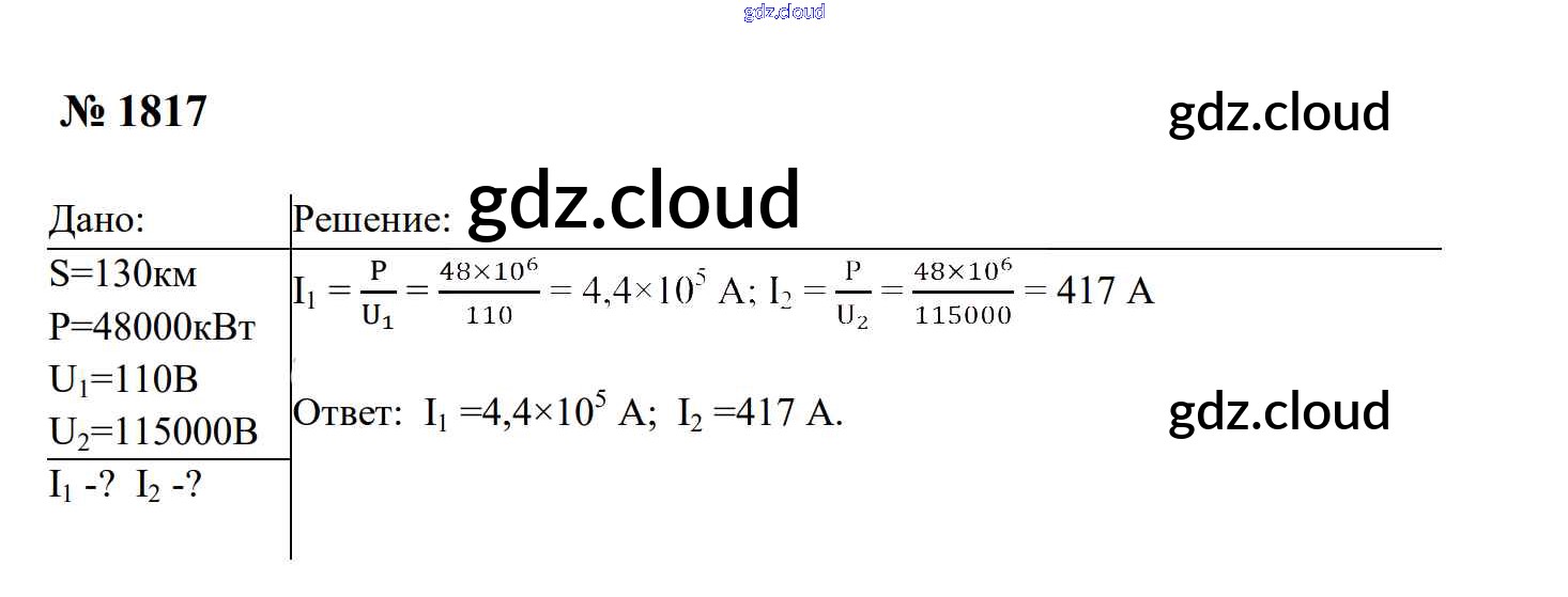 Ответ на задание 1817 Сборник задач Физика за 7, 8, 9 (седьмой, восьмой, девятый) класс Перышкин, Лонцова УМК 2016
