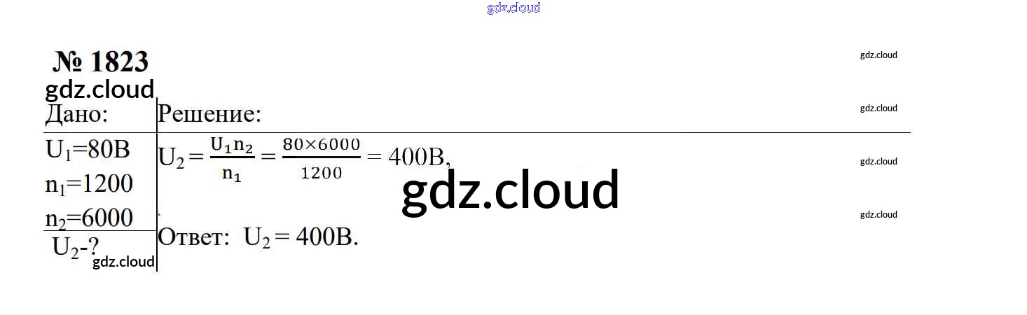 Ответ на задание 1823 Сборник задач Физика за 7, 8, 9 (седьмой, восьмой, девятый) класс Перышкин, Лонцова УМК 2016