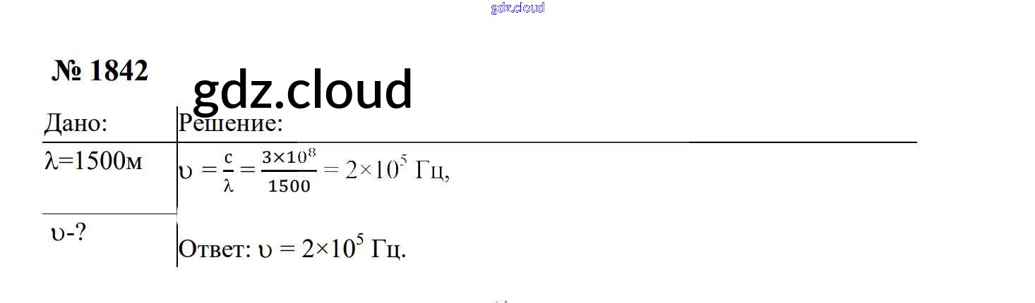 Ответ на задание 1842 Сборник задач Физика за 7, 8, 9 (седьмой, восьмой, девятый) класс Перышкин, Лонцова УМК 2016